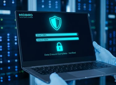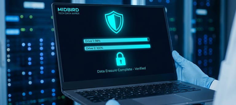 At Midbird Technologies, Our certified data erasure software securely wipes data from HDDs, SSDs, PCs, Macs®, Chromebooks, and servers permanently. It generates tamper-proof certificates and ensures compliance with major standards like GDPR, HIPAA, CPRA, NIST 800-53, ISO 27001, and more.